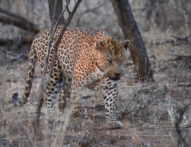 We drove around for a couple of hours looking for the leopards. The driver stopped periodically and listened for the signal from his tracking device. I was beginning to think that we might not see one. But just before giving up, the guide found two of them.