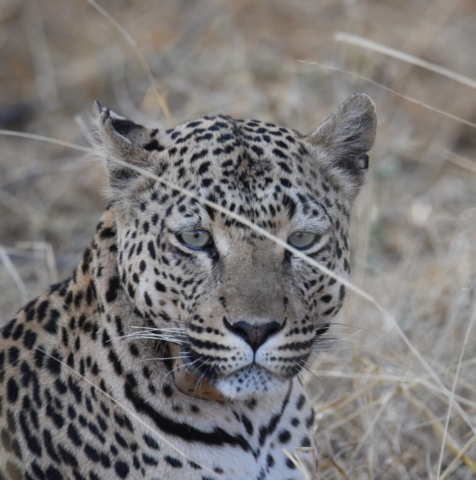A short while later, we saw a second leopard. This one was huge. It walked around in the bushes for a few minutes, and then he came out and walked toward our vehicle. He walked directly toward the place where I was sitting. He stopped about three meters away. We looked into each other’s faces for about ten seconds, and then he turned and walked away.